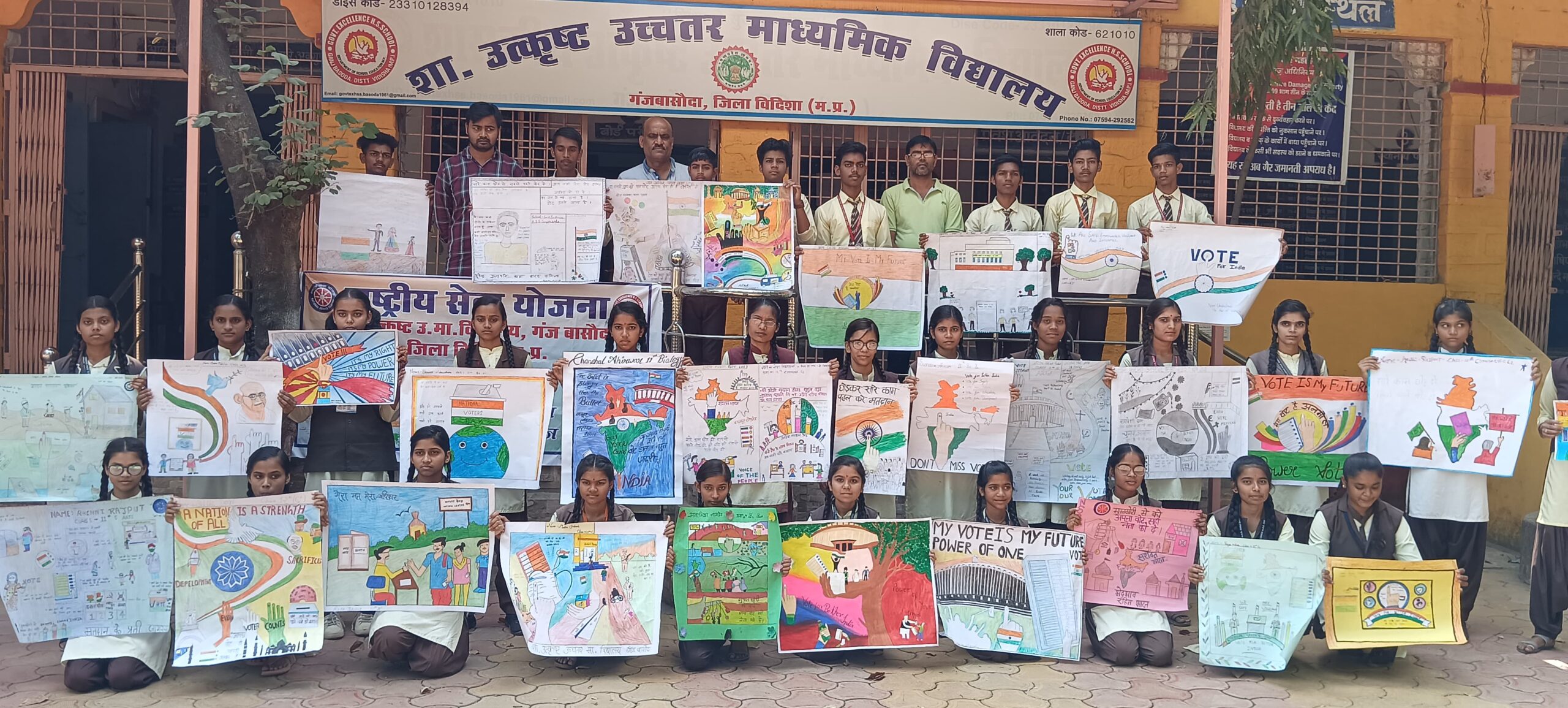 शासकीय उत्कृष्ट विद्यालय गंजबासौदा जिला विदिशा की राष्ट्रीय सेवा योजना इकाई द्वारा स्वीप अभियान के अंतर्गत, मतदाता जागरूकता विषय पर निबंध एवं पेंटिंग प्रतियोगिताओं का आयोजन किया गया l
