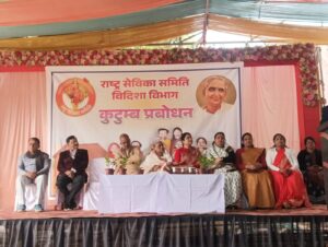 राष्ट्र सेविका समिति के 90 वर्ष एवं राष्ट्रीय स्वयं सेवक संघ के अवसर पर विदिशा विभाग के कुटुंब प्रबोधन गतिविधि के अंतर्गत कुटुंब गोष्ठी का आयोजन किया गया।